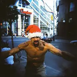 David Zancai (born May 7, 1968[2][3][4]) is a former street entertainer from Toronto, Ontario, Canada. Zancai is known for his character Zanta: a modified Santa Claus who travels the streets of downtown Toronto doing pushups and shouting "yes yes yes" and "Merry Christmess".[4] His costume consists of nothing but shorts, boots, and a red-and-white Santa hat, even during Toronto's winters. He claims to perform this routine every day of the year except Christmas Day, and estimates he does 2,000 to 3,000 pushups per day.[3] In 2000, Zancai fell 25 feet onto a staircase while working as a painter. He entered treatment for schizophrenia at St. Joseph's hospital, having been diagnosed with schizophrenia and bipolar disorder earlier in 2003.[5] Zancai has received mixed responses to his Zanta character, and has been banned from several public areas around Toronto, including the Toronto Transit Commission.[6]