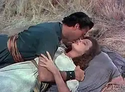 Theologian David Garland and his wife Diana argued: "Taking remarkable license with the story, the screenwriters changed Bathsheba from the one who is ogled by David into David's stalker. ... [T]he movie David and Bathsheba, written, directed and produced by males, makes the cinematic Bathsheba conform to male fantasies about women."[16] However, religious historian Adele Reinhartz found that by giving Bathsheba a more active role, "it reflects tensions and questions about gender identity in America in the aftermath of World War II, when women had entered the work force in large numbers and experienced a greater degree of independence and economic self-sufficiency. ...[Bathsheba] is not satisfied in the role of neglected wife and decides for herself what to do about it."[17] Susan Hayward was later quoted as having asked why the film was not called Bathsheba and David.[18]