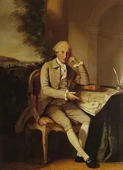 A portrait of Pury, painted by Thomas Hickey, hangs in the charter room in the town hall of Neuchâtel.[2] After developing several projects, a citizens' committee decided to erect a bronze statue of Pury in 1855.[1] The statue, designed by David d'Angers, stands in an eponymous town square (Place Pury) in Neuchâtel.[1] In 1986, on the occasion of the bicentenary of Pury's death, festivities were organized in Neuchâtel in the presence of American and Portuguese delegations.[1]