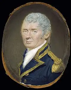 Gould was born at Bridgwater, Somerset, the son of the Richard Gould, of Wells. He was distantly related to the authors Henry and Sarah Fielding, and was the nephew of the naturalist William Gould. His uncle, Sir Henry Gould, was a Justice of the Common Pleas.[1] Davidge joined the navy in May 1772, serving as a volunteer in the Mediterranean aboard HMS Alarm. He later moved to the North American coast, where he was advanced to midshipman. He was promoted to lieutenant on 7 May 1779, later serving aboard HMS Winchelsea and HMS Phoenix.[1] He saw action in the American Revolutionary War, taking part in attacks on shore batteries and cutting out American ships.[2]