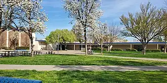 Davis Senior High School (known as Davis High or DHS or DSHS) is one of two high schools located in Davis, California, in the United States. DHS is a WASC accredited, 3-year, public comprehensive high school covering grades 10–12. The campus opened its current location in 1961; the previous high school location is now Davis City Hall.[4] Enrollment for school year 2017–2018 was 1,749 students.[5] The school's mascot is the Blue Devil, from the nickname for the popular WWI French Les Chasseurs Alpins Army Division.[6]