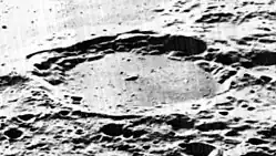 Davisson is a lunar impact crater that is located on the far side of the Moon from the Earth. This crater lies across the eastern rim of the huge walled plain Leibnitz, and the rim and outer rampart intrudes into the interior floor of Leibnitz. To the east-northeast of Davisson is the walled plain Oppenheimer, a formation only somewhat smaller than Leibnitz.