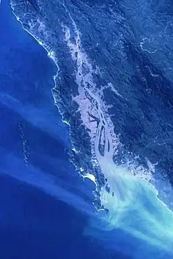 ![]() Mouth of the Dawei (Tavoy) River. The South Moscos Islands can be seen on the left side. | |