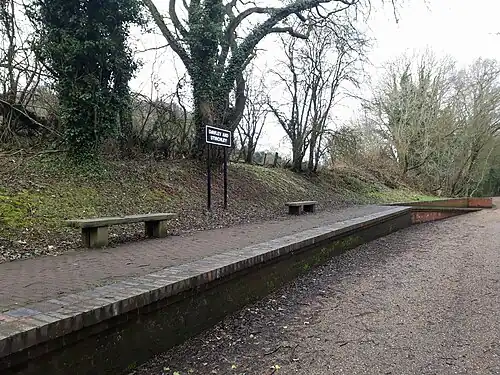 Unlike the other towns in Telford and Wrekin, Dawley never had its own railway station to serve the town itself. Two railway stations served the town despite being some distance from Dawley itself. The nearest station to the town was Dawley and Stirchley, located roughly 1 mile to the southeast of the town under Stirchley Lane and also served the neighboring village of Stirchley. It opened in 1860 on the Coalport branch line but closed in 1952 along with the line. The trackbed including the platform now form part of the Silkin Way.[7] The other station is in nearby Horsehay, located 1 mile to the southwest of the town. It is on the former Wellington to Craven Arms Line and originally closed in 1962, before being reopened by the Telford Steam Railway. It now serves as a heritage railway station. The nearest mainline station for the town is Telford Central.