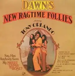 Dawn's New Ragtime Follies is a 1973 album by the American pop group Tony Orlando and Dawn. This release was a concept album that combined Vaudevillian ragtime flavors with pop and disco music. With multi-generational appeal, and aided by Tony Orlando & Dawn's highly successful weekly TV variety show on CBS, Dawn's New Ragtime Follies sold millions and became Tony Orlando & Dawn’s best selling LP. New Ragtime Follies spawned the best-selling singles "Say, Has Anybody Seen My Sweet Gypsy Rose," "Who’s in the Strawberry Patch With Sally" and "Steppin' Out (Gonna Boogie Tonight)." Telma Hopkins is featured on lead vocals for a cover of John Sebastian's "Daydream", which was a hit for the Lovin' Spoonful in 1966. A recent compact disc reissue of the album contains four bonus tracks, "Jolie", "Personality", Come Back Billie Jo", and a slightly varied single version of "Steppin’ Out."
