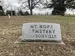 Dawsonville was laid out in 1879, and named after Lafe Dawson, an early settler.[2] Variant names were "City Bluff",[3] "Dawson",[4] and "Halsas Ferry".[1] The first post office was called City Bluff from 1871-1879, and then the name changed to Dawson in 1880, and remained in operation until 1904.[5]
