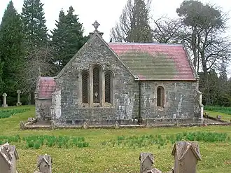 In 1837 the ruins were demolished by the lawyer Sir John Murray Naesmyth to make way for the present chapel, also used as the family mausoleum.[9] The chapel still contains a probable medieval font, and the chapel bell is said to carry a date of 1642, being recast in 1791.[10]