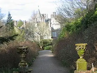 Dawyck Castle was built about the thirteenth century and belonged to the Veitch family until 1691 when it was purchased by Sir James Nasmyth.[1] In 1897 the estate and barony passed to the Balfours.[2][3] Dawyck was demolished in 1830 and the Dawyck House mansion was erected on the same footprint. The current house has been protected as a Category B listed building since 23 February 1971[4] and the grounds were added to the Inventory of Gardens and Designed Landscapes in Scotland in 1987.[5]