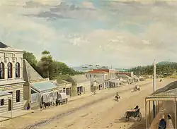 Agricultural activity followed the gold rush, with many of the Chinese in the area also operating market gardens, and Italians in particular establishing vineyards.[5][6] A post office opened on 1 February 1858,[7] and a telegraph office opened in August 1859,[8] the same year Daylesford became a municipality. By that time, its population had risen to approximately 7,000, with around 3,400 diggers involved in mining efforts, and the town's first council was formed.[5][6]
