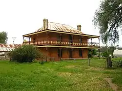 Today the site retains an almost intact nineteenth century assemblage of farming and flour milling equipment. Approached along a peppercorn and pine tree lined drive with a gatehouse at the entrance, the three-storey brick mill of 1865 and later granary extension is flanked by a two-storey brick residence with a two-storey encircling verandah that was added around 1905. The mill was driven by a rare early E T Bellhouse steam engine,[4] which was powered by a Cornish boiler both of which intact. Other buildings on site include a large stable, chaff shed, blacksmith, butchery, dairy, shearing shed, milking shed, piggery and chook shed, constructed variously in hand made brick, timber and corrugated galvanised iron.[1]