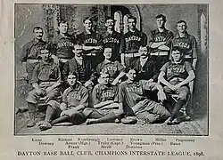In the 1900 season, the Dayton Veterans played their final Interstate League season and won the league pennant.[21] With a regular season record of 90–43, the Veterans played the season under manager Bill Armor. Dayton ended the regular season in first-place finishing 7.5 games ahead of the second place Fort Wayne Indians.[22] A playoff final was held between the top two teams in the standings. Fort Wayne won the league championship by defeating Dayton 4 games to 3.[2][23]