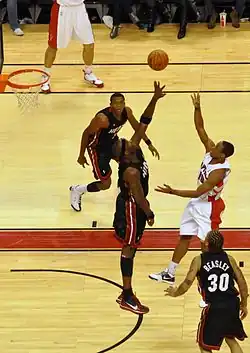 On December 12, 2023, DeRozan passed Clyde Drexler for 35th in the NBA All-Time Scoring List in loss to the Denver Nuggets.[140] On March 13, 2024, DeRozan scored a season-high 46 points and grabbed 9 rebounds in a 132–129 overtime win over the Indiana Pacers. He also passed Elgin Baylor, Dwyane Wade, and Adrian Dantley to enter 32nd place on the NBA All-Time Scoring List. He made a fadeaway midrange shot at the buzzer in the same game to send it into overtime.[141]