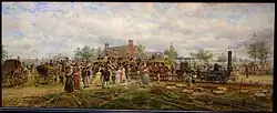 After the original DeWitt Clinton was scrapped, the M&H’s successor, the New York Central Railroad (NYCR) built a full-scale, operational reproduction of the DeWitt Clinton for the 1893 Columbian Exposition in Chicago.[1] The fair was held that year to mark the 400th anniversary of the arrival of Christopher Columbus in 1492.[11] This replica was accompanied by replicas of the original Goold cars.[2][12]