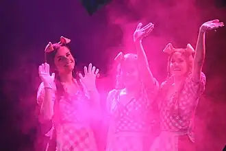 The Three Little Pigs (Dutch: De 3 Biggetjes) is a Flemish-Dutch musical, based on the fairy tale of the same name and serves as a sequel to it. The leading roles are played by the pop group K3. The musical tells the story of the three daughters of the pig with the brick house: Knirri, Knarri, and Knorri, who work as waitresses in their mother's Three Little Pigs Café. Meanwhile, the big bad wolf now has three sons, who are the same age as the three pig sisters. The wolf wants his sons to catch the three pig sisters as part of a personal vendetta, but the pigs and wolves fall in love with each other instead.
