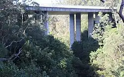 De Burghs Bridge is an important part of the A3, a significant north–south artery across metropolitan Sydney which is the next road that connects the northern suburbs and the lower northern suburbs after (to the east of) Pennant Hills Road. The bridge carries three lanes of traffic each way and a pedestrian walkway on either side of the bridge. A plaque placed on the bridge pays tribute to the old bridge. It was placed there in 1988 before the destruction of the old bridge.[5]