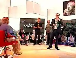 De Grote Donorshow (The Great Donor Show) was a reality television program which was broadcast in the Netherlands on Friday, June 1, 2007, by BNN. The program involved a supposedly terminally ill 37-year-old woman donating a kidney to one of twenty-five people requiring a kidney transplantation. After a first selection, three people remained. Viewers were able to send advice on whom they thought she should choose to give her kidney to via text messages.[1][2] The profit made by the text messages was given to the Dutch Kidney Foundation.[3] The program, due to its controversial nature, had received heavy international criticism in the run-up to the broadcast.[1][2] In the end, it was revealed during the course of the show that the "terminally ill" woman was, in reality, an actress, although the three candidates were, in fact, real kidney patients; they were aware that Lisa was an actress, and participated because they were supportive of BNN's cause to give awareness to the limited number of organ donors in the Netherlands.[4]
