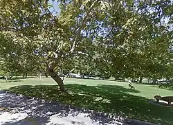 De Neve Square Park is an urban pocket park located in the neighborhood of Holmby Hills in West Los Angeles, Los Angeles, California.[1][2] It is located at the northern terminus of Mapleton Drive where it meets Saint Pierre Road at Beverly Glen Boulevard, where Holmby Hills borders East Gate Bel Air to the west. The trapezoidal (rather than square) park is ringed by mature sycamore trees as well as English-style street lamps from the 1920s (created exclusively for Holmby Hills).[1] De Neve Square Park is one of two parks in Holmby Hills (the other being Holmby Park).