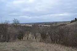There is also some scrubland, the main trees being hawthorn, which often invades chalk downland, a buckthorn and wayfaring tree, with black bryony and old man's beard; false-brome usually dominates the ground flora in scrubby areas. There are glowworms, and grizzled skipper and dingy skipper butterflies.[1][3]
