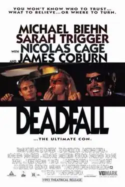 Deadfall is a 1993 crime drama film directed by Christopher Coppola. Coppola co-wrote the script with Nick Vallelonga. The film stars Michael Biehn, Coppola's brother Nicolas Cage, Sarah Trigger, Charlie Sheen, James Coburn, and Peter Fonda. It is also the prime influence on the song "Deadfall" written by the American hardcore punk band Snot. A prequel/sequel, Arsenal, starring Nicolas Cage as his character Eddie King, was released in 2017.