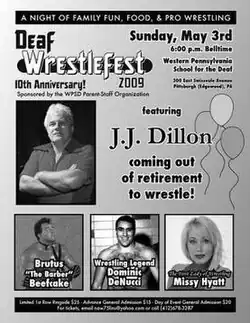 - ^ "Deaf Wrestlefest 2009 results from 5/3 in Pittsburgh, PA featuring Brutus Beefcake, Shane Douglas & J. J. Dillon coming out of retirement". Newswire. IndyWrestlingNews.com. May 5, 2009. Retrieved July 29, 2011.