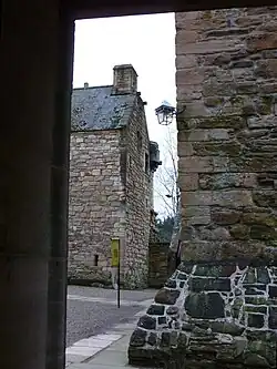 Defence was not ignored in the construction of the palace. The tower has projecting battlements and Lord Boyd's private apartments were inside. This tower was known as the Laigh or Low Tower; although high, it is lower than the keep. Also the courtyard was protected by a high wall which was called the Barmkin. This protected the various other buildings housed in the courtyard, such as stables, stores and blacksmiths.[12]