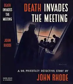 Death Invades the Meeting is a 1944 detective novel by John Rhode, the pen name of the British writer Cecil Street.[1][2] It is the thirty ninth in his long-running series of novels featuring Lancelot Priestley, a Golden Age armchair detective.[3] Reviewing the novel for the Times Literary Supplement Maurice Willson Disher noted "His ingenuity is becoming as delicate to handle as high explosive. His stories may become so difficult to review without saying too much that his triumph will come when they cannot, for discretion’s sake, be reviewed at all."