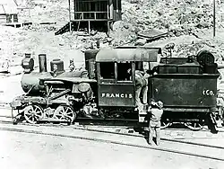 The line was built by a separate company from Pacific Coast Borax Company, because they were struggling with financial issues at the time. Equipment and Heisler locomotive #2 "Francis" from the Pacific Coast Borax Company's old Borate and Daggett Railroad were used to build the Death Valley Railroad. After the line was completed, two 2-8-0 steam locomotives were bought from the Baldwin Locomotive Works to work the line and Francis was sold off.