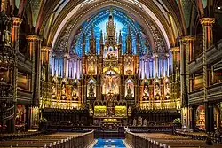 A state funeral for Mulroney was held at the Notre-Dame Basilica on March 23, 2024.[8] The service featured readings by Mulroney's family and eulogies by his daughter, Ontario cabinet minister Caroline Mulroney, Prime Minister Justin Trudeau, former U.S. secretary of state James Baker delivered by colleague Tim McBride, former Mulroney-era cabinet minister and premier of Quebec Jean Charest, hockey player Wayne Gretzky, and businessman Pierre Karl Peladeau.[10][11]