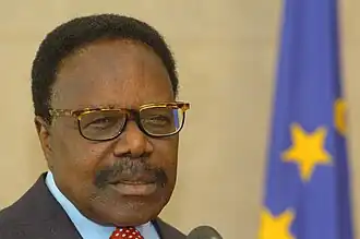 Others in attendance at the funeral included President of the Republic of the Congo,[14] Denis Sassou Nguesso, President of Togo,[14] Faure Gnassingbé,[14] President of Cameroon, Paul Biya and Jean Ping,[14] Chairperson of the African Union Commission,[14] Teodoro Obiang Nguema Mbasogo of Equatorial Guinea,[18] and the Presidents of Benin, Burkina Faso, Burundi, Chad, Mali, Senegal and the Democratic Republic of São Tomé and Príncipe.[18]