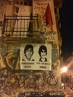 Banner placed in Greece, in March 2014 at the place where Alexis Grigoropoulos got shot in Exarchia, Athens