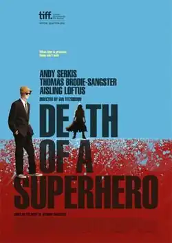 Death of a Superhero is a 2011 Irish drama film based on the New Zealand novel of the same name by Anthony McCarten. Originally planned to be directed by McCarten in New Zealand, the film was shot on location in Ireland throughout 2010 and was directed by Ian FitzGibbon. The film stars Thomas Sangster alongside Andy Serkis. It tells the story of a dying 15-year-old boy who draws comic book stories of an invincible superhero as he struggles with his mortality.