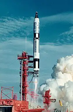 - For the first time, a nation placed a satellite into orbit while another nation's crewed mission was in orbit as well. The Soviet Union launched Kosmos 99, via a Vostok-2 rocket[74] from Site 31/6 at the Baikonur Cosmodrome, while the U.S. Gemini 7 mission was on its sixth day in outer space.