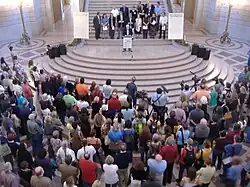 The Declaration for Healthy Food and Agriculture (also known as the Food Declaration) is a declaration, endorsed by 200 national leaders of the slow food movement, outlining 12 principles that these leaders believe should frame a healthy food and agriculture policy.[1] Initiated by Roots of Change (a San Francisco-based non-profit organization) and developed by a national team of thinkers, producers and activists, the stated goal of the declaration is to promote food and agriculture policies that benefit all Americans. It was launched at the 2008 Slow Food Nation event at San Francisco City Hall.