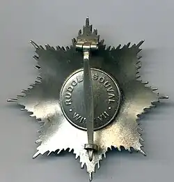 The second highest military decoration by the awarded by the Azad Hind Government was the Sardar-e-Jung (Leader of Battle), which was a 1st Class Star. The award was a Badge, and could be conferred with swords for valour in combat, and without swords for non-combat awards. At least two awards were made, one to Colonel Shaukat Hayat Malik for the capture of Moirang, and to Capt. Shangara Singh Mann. Capt. Mann was also awarded the Vir-e-Hind medal.[1]