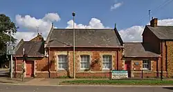 In 1814 a Deddington National School Society was founded to create separate boys' and girls' to succeed the charity school.[2] By 1816 the two schools were teaching 35 children between them, including about 20 from neighbouring parishes.[2] By 1832 the school was housed in converted buildings, including a barn, attached to Appletree Farm in Hopcraft Lane.[2] Support for Deddington's National Schools declined until in 1848 they had only 80 pupils between them.[2] Purpose-built boys' and girls' school buildings were designed by William Hambley of London and completed in 1854 on a new site in Banbury Road.[74] The two schools were an immediate success and pupil numbers recovered to 180 by 1856.[2] But school attendance varied with the seasons, as in the summer farm-workers' children tended to help more on the farm. In 1868, 247 children attended the school in winter but only 191 in summer.[2] Boys and girls remained in separate schools on the same site until 1908, when the girls' school became the infants' school and the boys' school became a mixed school for the older children.[2]