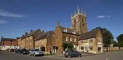 ![]() Houses at the north end of Market Place, with the parish church tower behind them | |