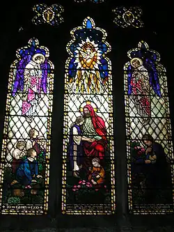 In 1643, during the English Civil War, Charles I requisitioned the bells from the damaged tower,[41] presumably for scrap. Thereafter there is no record of Saint Peter and Paul having any bells until the middle of the 18th century, by which time it had a ring of four.[41] In 1791 Thomas Mears of the Whitechapel Bell Foundry recast them as a ring of six. In 1946 Mears and Stainbank, also of the Whitechapel Bell Foundry, added the present treble and second bell, increasing the ring to eight.[42] Saint Peter and Paul's stained glass windows include the east window of the chancel made by Charles Kempe in 1888 and two windows at the east end of the north aisle made by AJ Davies of the Bromsgrove Guild of Applied Arts[43] in 1923 and 1936.[44] The building is Grade II* listed. The description from December 1955 provides this summary: "Early C13, late C13, C14 and C15; tower rebuilt and church repaired mid/late C17; repaired 1843, and restored 1858-68 by G.E. Street".[36]