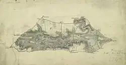 The toponym is derived from the Old English for "place of the people of Dæda". "Dæda" was short for Anglo-Saxon names such as Dædhēah. The toponym was spelt Dadintone around 950, Dædintun around 1050 and Dadinton in 1190.[5] After the Norman Conquest of England in 1066, William the Conqueror's step-brother Odo, Bishop of Bayeux, held the manor of Deddington. Odo had the outer bailey of Deddington Castle built in what is now the east of the town. The inner bailey on the east side of the castle seems to have been inserted in the 12th century, and buildings within the inner bailey seem to have been added later that century.[6] In the 13th century the castle declined and fell into disrepair. In the 14th century it was demolished and its building stone re-used. In 1377 some of the stone was sold to Bicester Priory.[7] There have been two archaeological excavations at the site, in 1947 and in 1978. The remains were reburied afterward and only the extensive earthworks are visible today.[8][9]
