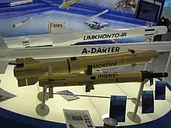Project Assegaai: A fifth-generation air-to-air missile jointly developed by Denel Dynamics and Brazil's Mectron, Avibras, and Opto Eletrônica. Designed to equip the Brazillian Air Force and South African Air Force's Gripen fighters, the A-Darter offers high agility, infrared homing, and counter-countermeasure capabilities.[23]