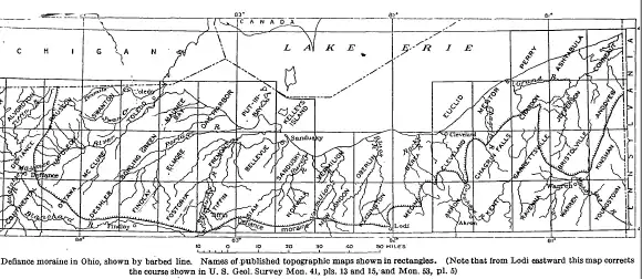 The Defiance Moraine was deposited about 14,800[1] years ago during the late Wisconsin glaciation and spans the northern portion of the state of Ohio from Defiance, Ohio in the west to near Pymatuning Reservoir in the east.[2]
