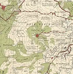 Deir Yassin has been identified as one of the villages given as a fief to the Church of the Holy Sepulchre in the 12th century.[5] However, in 1136 Fulk, King of Jerusalem confirmed it was a casale under the Knights Hospitallers.[6][7] It has been suggested that a vaulted building in the center of the village could have been of Crusader or Mamluk origin.[8]