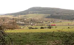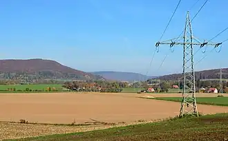 ![]() View from the Katzberg ridge of the Deister Gate. Left: the Ebersberg; right: the Raher Berg | |