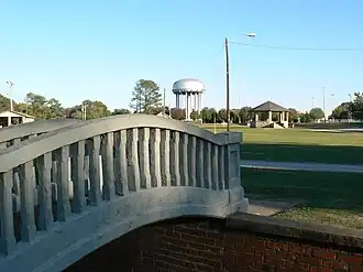 The middle portion of the park contains a children's playground, the new "Splash Pad", and a ditch with a concrete bridge donated to the park. The bridge was moved in the 1930s from Ferry Street to accentuate the beauty of the park and has been a favorite location for young and old alike ever since.[1]