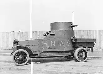 The Delaunay-Belleville armoured car was a British armoured car built on the chassis of the luxury French Delaunay-Belleville tourer. It saw service with the Royal Naval Air Service in the early years of the First World War.
