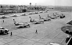 During the Korean War, the entire Delaware Air National Guard was ordered to active duty, and though the 142nd Fighter Squadron remained at New Castle County Airport, its pilots were all rotated to the Far East and most saw combat against Russian-built jets in what came to be known as MiG Alley over Korea.[2]