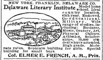 The Delaware Literary Institute was a secondary school located at Franklin, New York. In the mid-19th century it was one of the most prominent educational institutions in New York State. It operated from 1835 to 1902.