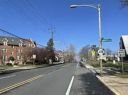 DE 48 continues into the city of Wilmington as Lancaster Avenue and heads into urban areas of homes and businesses, with the eastbound direction narrowing to one lane at the intersection with Greenhill Avenue. Following this intersection, the route crosses over CSX's Philadelphia Subdivision railroad line on a bridge. The road narrows to two lanes and passes to the north of another cemetery. The route intersects DE 2, which follows the one-way pair of Lincoln Street northbound and Union Street southbound, in the Union Park Gardens neighborhood.[3][4]