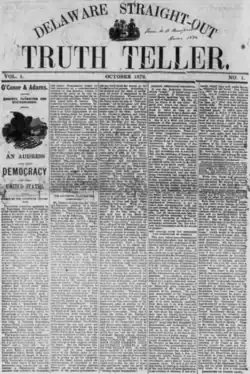- ^ "Delaware Straightout Truth Teller". Wilmington Daily Commercial. September 30, 1872. p. 2. Archived from the original on May 26, 2024. Retrieved June 9, 2022 – via Newspapers.com.