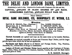 It was originally incorporated as the Delhi Banking Corporation in India in 1844 and under this better known name in London in 1865.