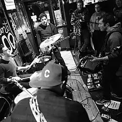 Delicate Flowers is a four-piece indie rock and folk band from New Jersey, that formed in 2017. It consists of drummer Skylar Adler, bassist Frank DeFranco, guitarist and vocalist Eric Goldberg, and guitarist Donnie Law. Delicate Flowers began as a solo project by Goldberg, writing "songs that were almost more poems than songs."[1] They draw comparison to the music of Conor Oberst, Sufjan Stevens, My Bloody Valentine and Silversun Pickups.[2][3] Their first EP, the four-track Delicate Flowers, was released with Sniffling Indie Kids on 6 October 2015, and it contains a cover of "Jesus Doesn't Want Me for a Sunbeam." The lead single "Inherently a Drag" is about "not believing in anything and how that's a bummer but that at the same time, you can't really fool yourself." Speak Into My Good Eye describes the song as a "mature, world-weariness backed by atmospheric, jangly acoustic strums, echoed harmonies and a sense of hope springing up out of the uncertainty."[4] The eight-track album, entitled Happy Accidents, was released on 15 April 2016. Goldberg plays every instrument on the album.[2] Bob Makin in Courier News calls it "strip[ped] down to an indie folk root," adding that the song "Happy Accidents" "mines the kind of intelligent, witty, emotionally raw songwriting that has made Sufjan Stevens and the late Elliott Smith influences on many young artists."[5]